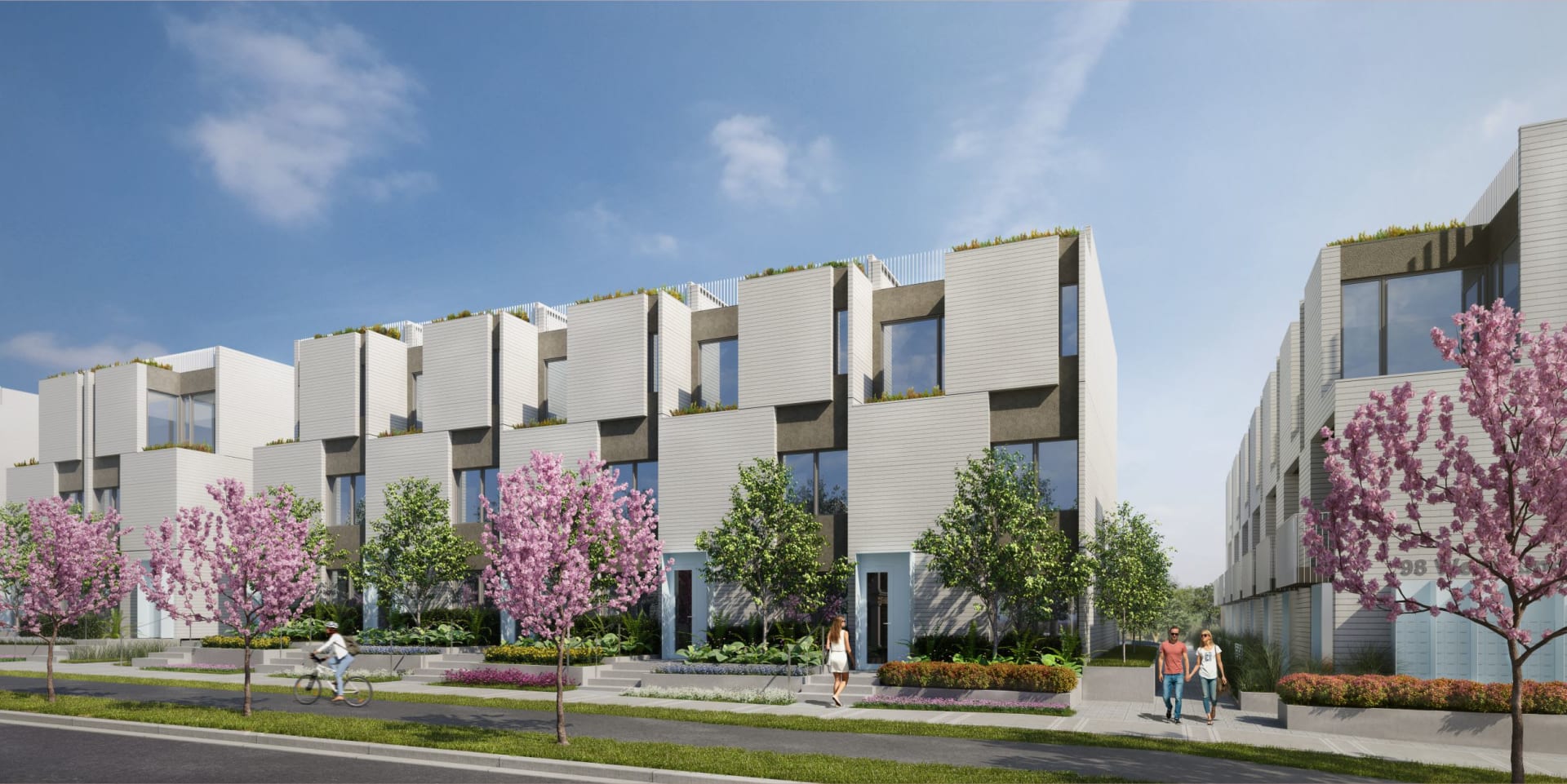 With contemporary white brick exteriors surrounded by lush landscaping, Just West beautifully complements its iconic west-side setting. Here, smart architectural design maximizes indoor-outdoor living with balconies, patios, or rooftop decks in each home.